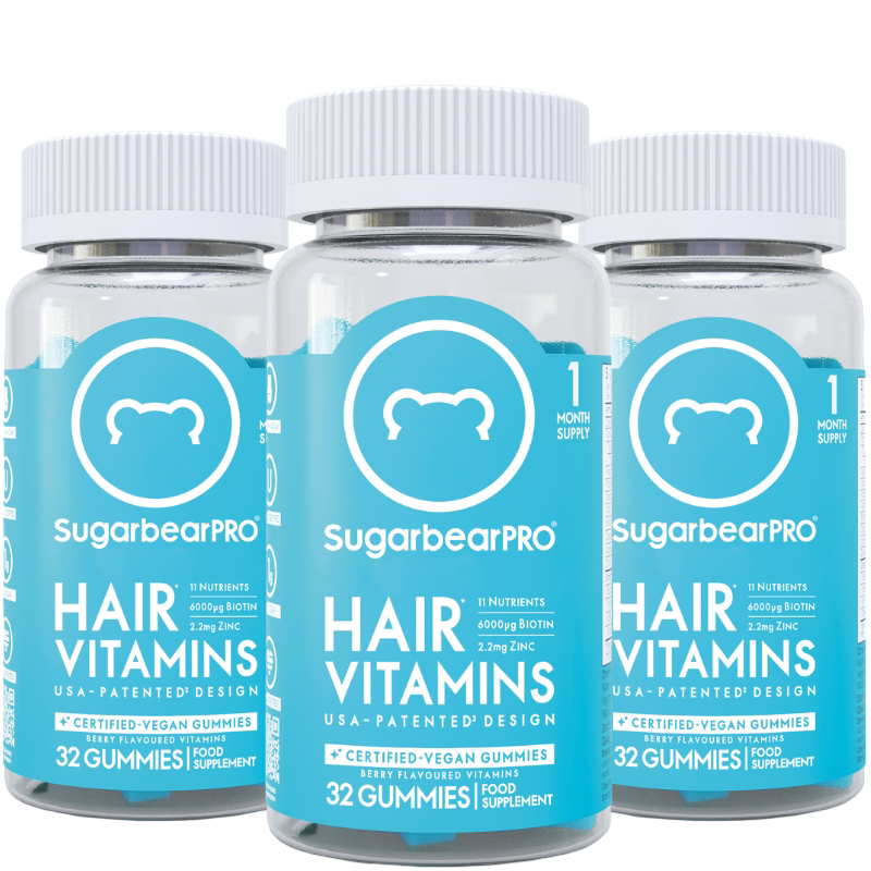 Die SugarBearHair Haarvitamine sind leckere Gummibärchen für gesundes Haar! Dieses wundervolle Set enthaltet Monatspackungen, welche für 3 Monaten ausreichen. Diese kleinen Wunderbären, ist die am meisten verkaufte Vitamin-Kombination im Onlinehandel. Die köstlichen Bärchen sind vegan, ohne Tierversuche und werden mit natürlichen Beeren aromatisiert, damit sie ihren herrlichen süssen Geschmack erhalten. Die hochwertigen und essenziellen Inhaltsstoffe stärken deine Haare und beugen dem Haarausfall vor. Mit den enthaltenen Vitaminen: D2, E, B1, B12, Kalzium, Jod, Biotin, Omega-3 und Zink erhältst du alle Nährstoffe welche deine Haare benötigen. Die Glutenfreie, Sojafreie und Gelatinefreie Formel macht die Einnahme bedenkenlos und schonend für deinen Magen. Dein Haarausfall wird gestoppt und deine Haare werden durchgehend gestärkt. Zudem wird der Haarwachstum angeregt. Eine Dose SugarBearHairs enthält 32 Stücke, was einer Einnahme für einen Monat entspricht.