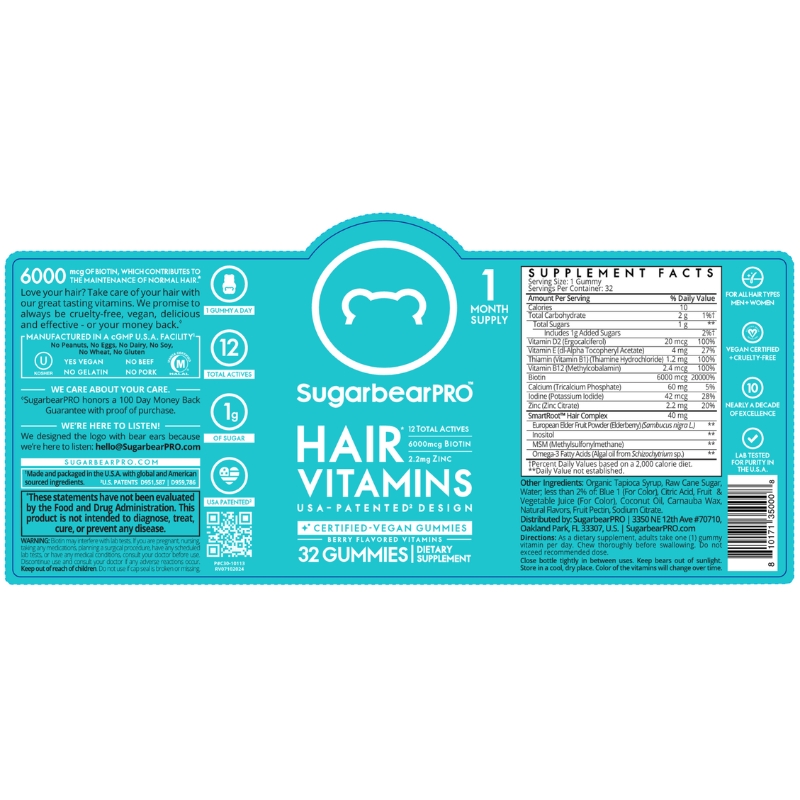 Wer kennt es nicht? Der Haarausfall ist nicht aufzuhalten und die Haare sind dünn und kraftlos? Die in den SugarBearHair enthaltenen Inhaltsstoffe werden alle für gesunde und schöne Haare benötigt. Die Einnahme der Vitaminbärchen stärkt deine Haare und gibt ihnen die Elastizität zurück. Der Haarwachstum wird beschleunigt und somit der Haarausfall gemindert. Da die SugarBearHair keine Hormone beinhalten, musst du dir auch keine Sorgen über eine Veränderung deiner Körper- und Gesichtshaare machen.
